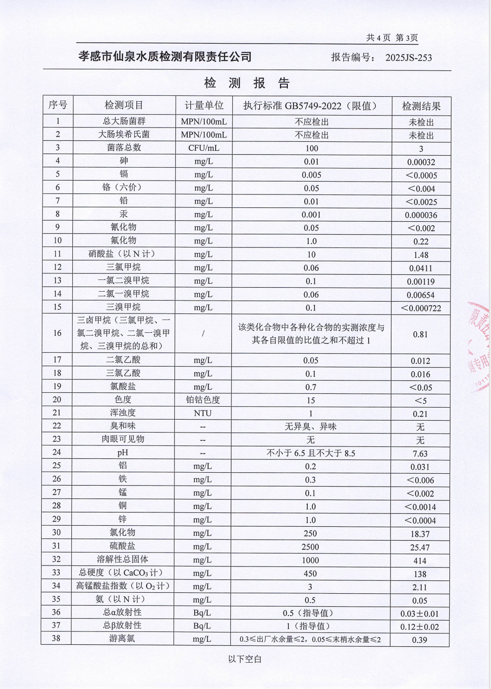 管网水水质公告