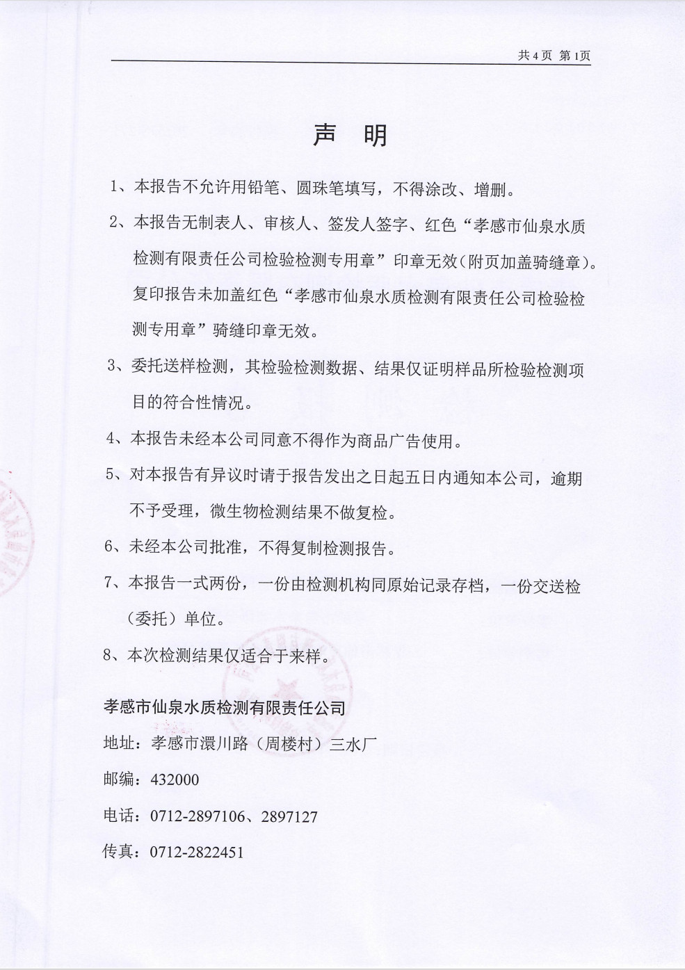 管网水水质公告